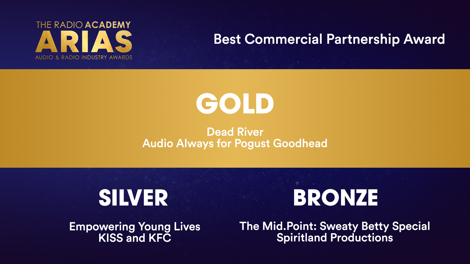 - BRONZE: The Mid.Point: Sweaty Betty Special – Spiritland Productions