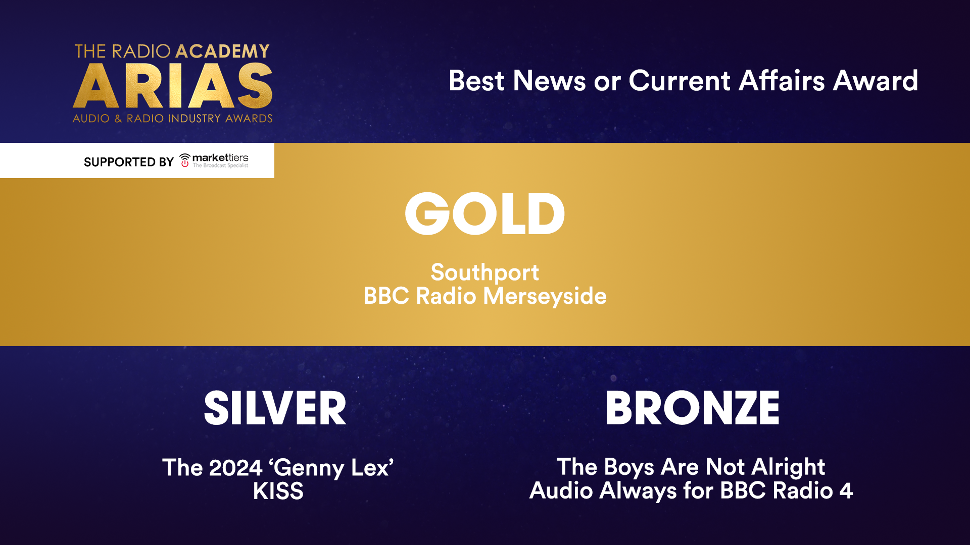 | Best News or Current Affairs Award 2025 Supported by markettiers ● GOLD: Southport – BBC Radio Merseyside |